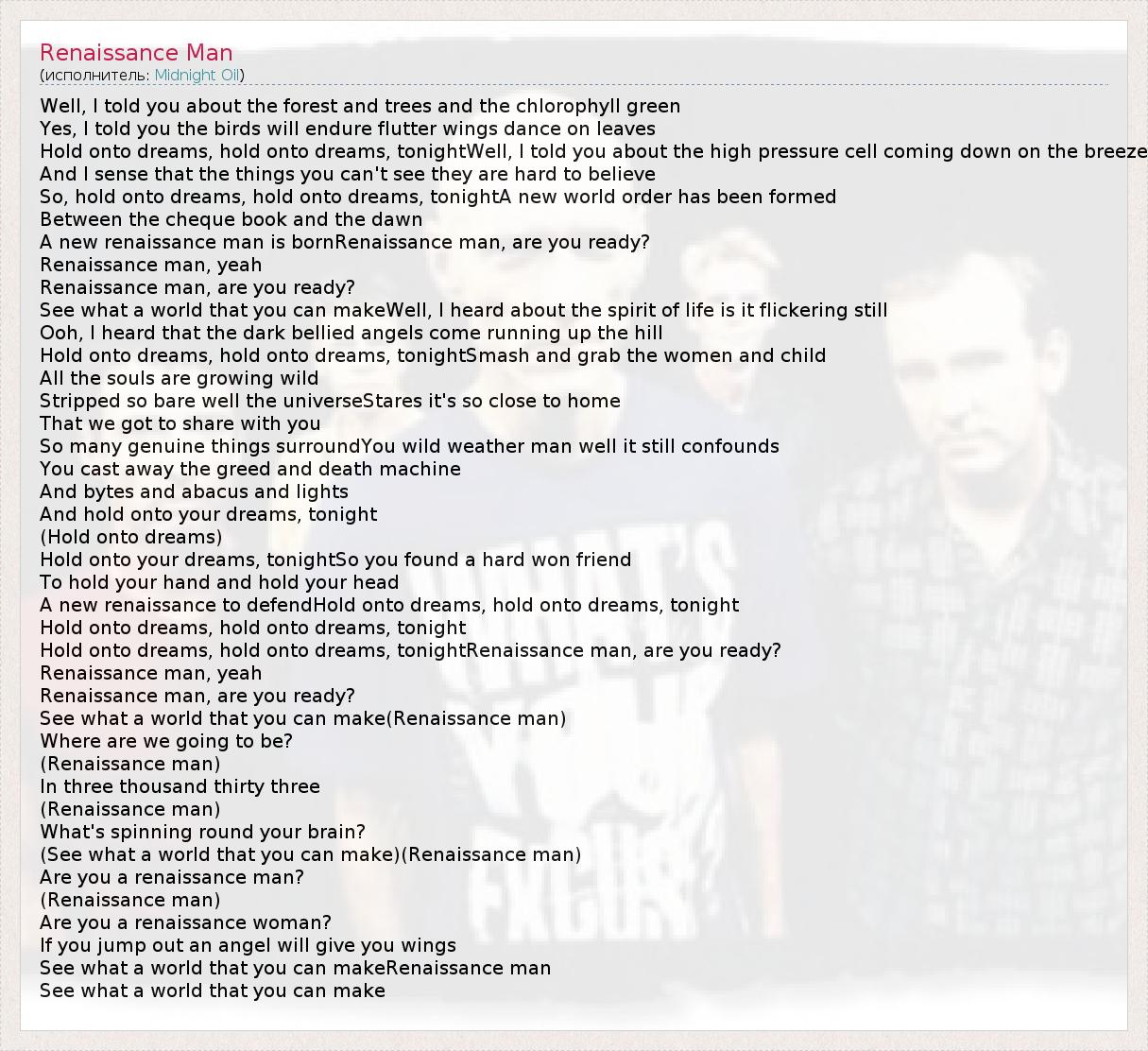 А как ты думаешь, о чем песня "Renaissance Man" ?