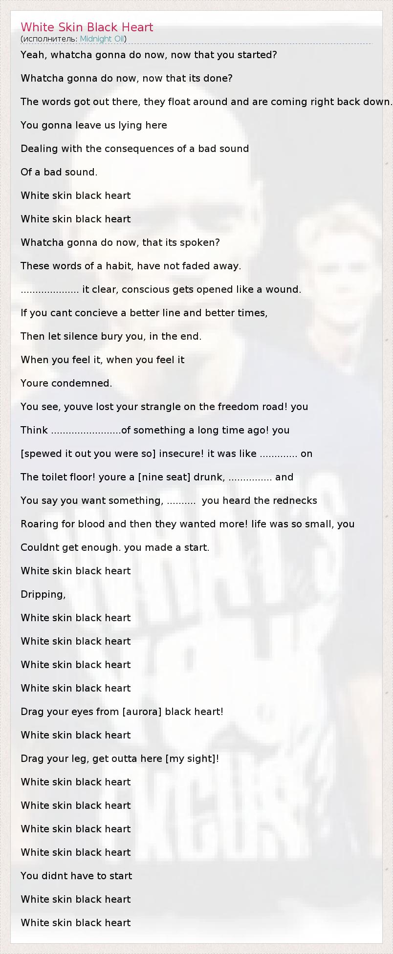 А как ты думаешь, о чем песня "White Skin Black Heart" ?