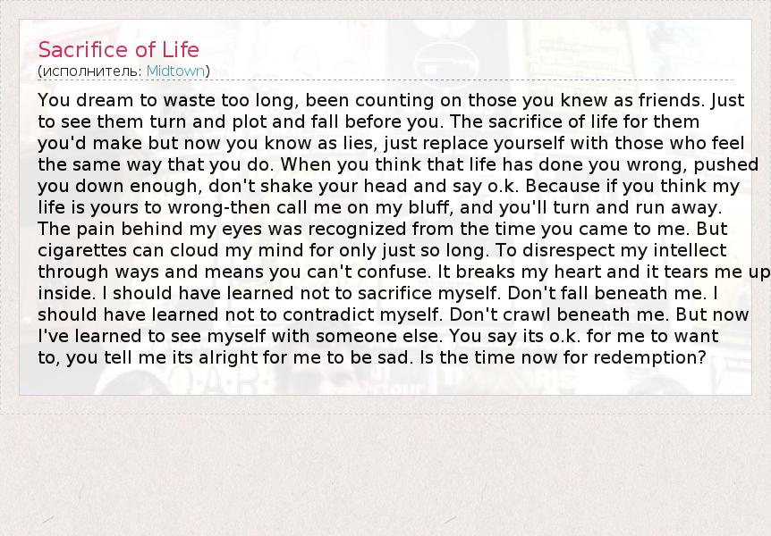 А как ты думаешь, о чем песня "Sacrifice of Life" ?