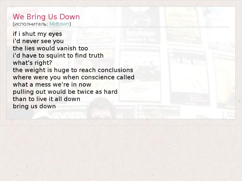 А как ты думаешь, о чем песня "We Bring Us Down" ?
