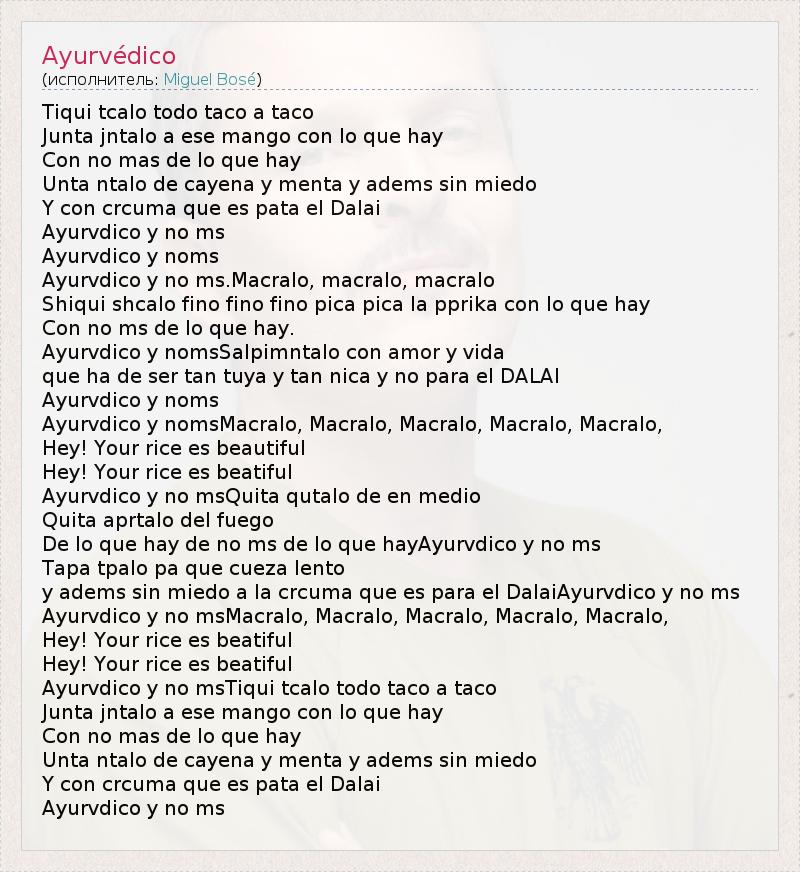 А как ты думаешь, о чем песня "Ayurvédico" ?
