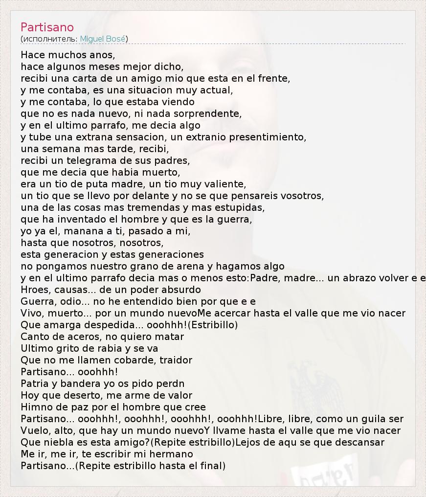 Partisano... ooohhh!, ooohhh!, ooohhh!, ooohhh!Libre, libre, como un guila ser