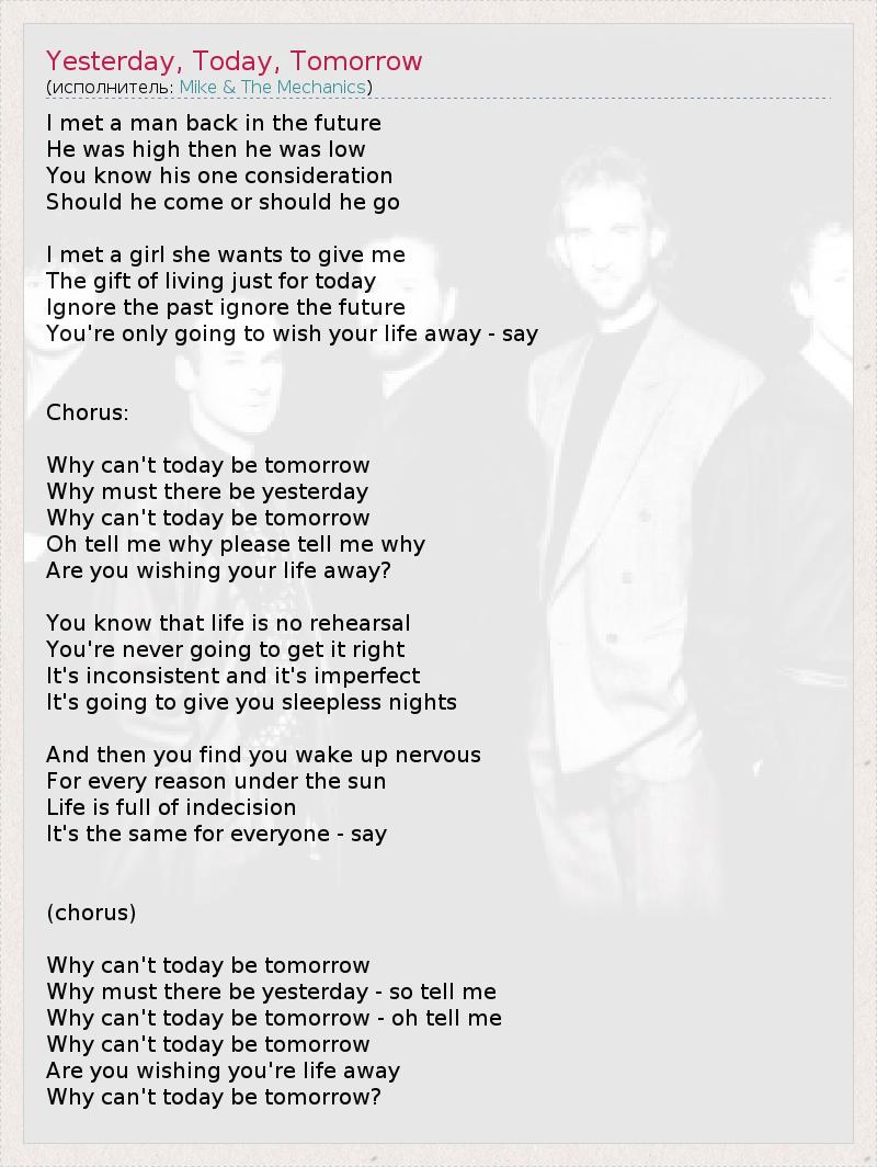 А как ты думаешь, о чем песня "Yesterday, Today, Tomorrow" ?