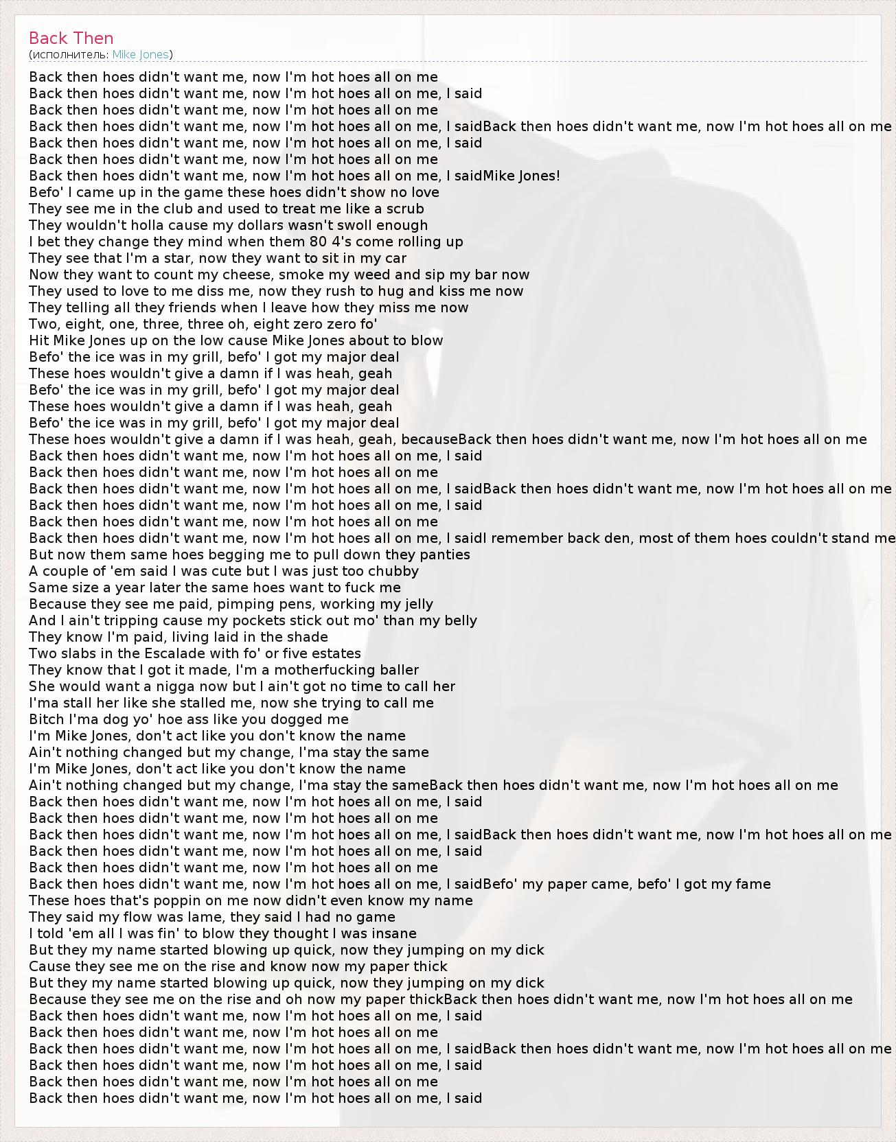 Back then hoes didn't want me, now I'm hot hoes all on me, I saidMike Jones!