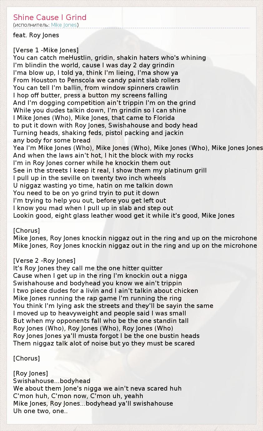 А как ты думаешь, о чем песня "Shine Cause I Grind" ?
