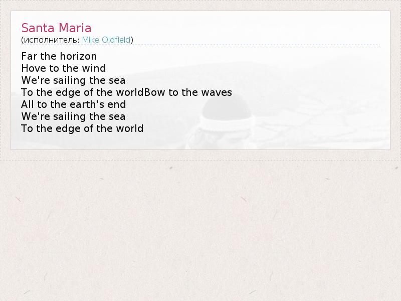 А как ты думаешь, о чем песня "Santa Maria" ?