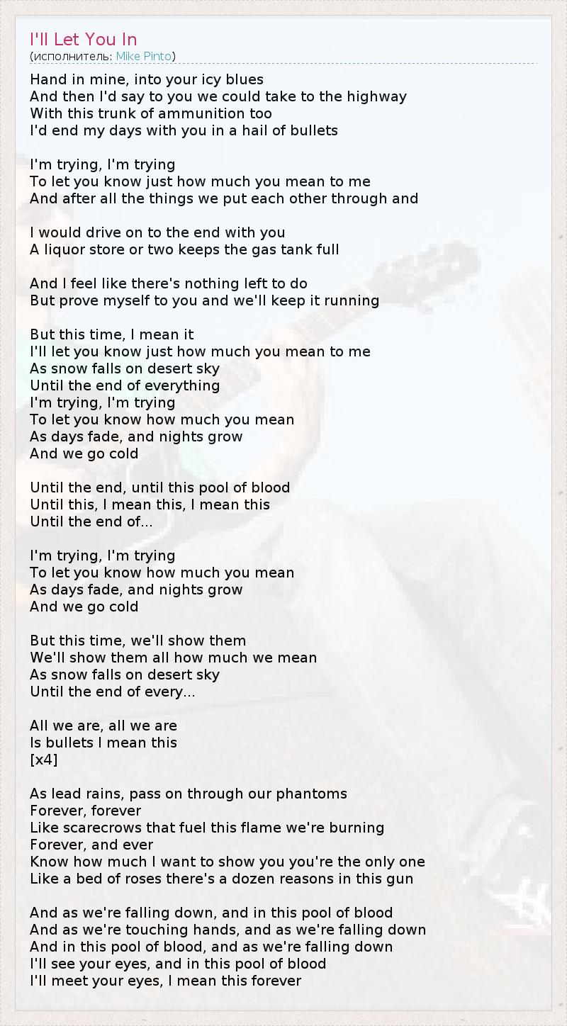 А как ты думаешь, о чем песня "I'll Let You In" ?