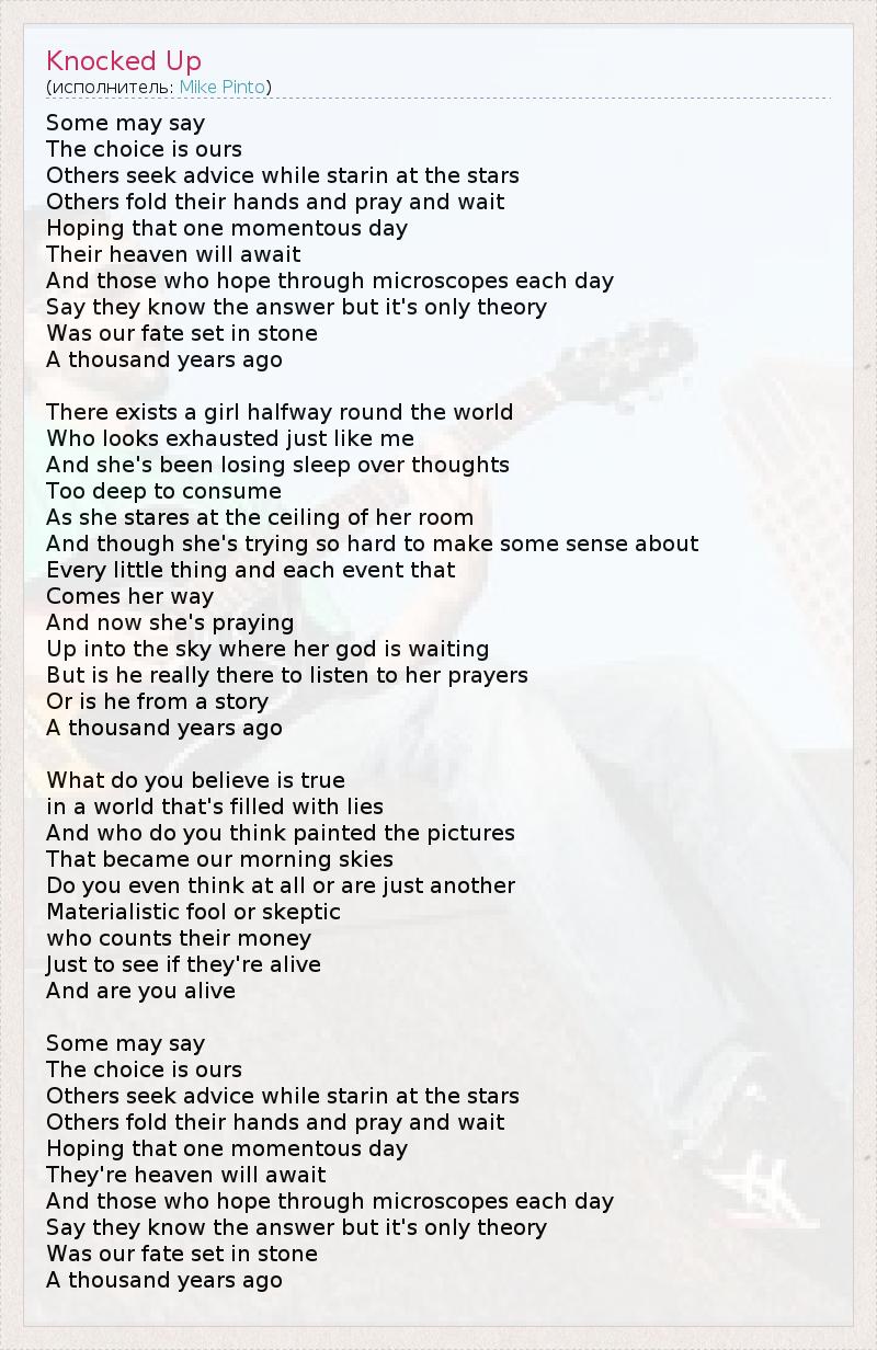 А как ты думаешь, о чем песня "Knocked Up" ?