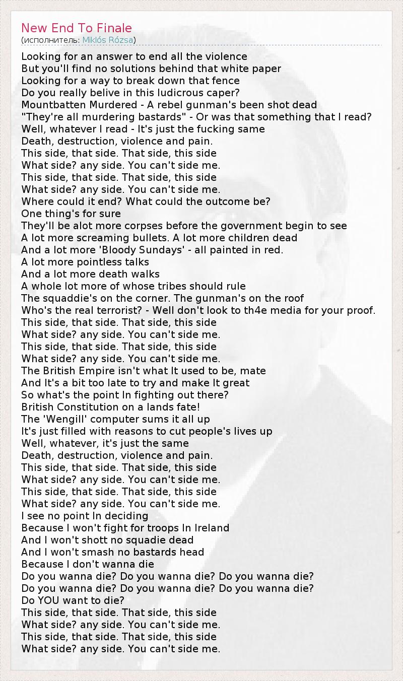 А как ты думаешь, о чем песня "New End To Finale" ?