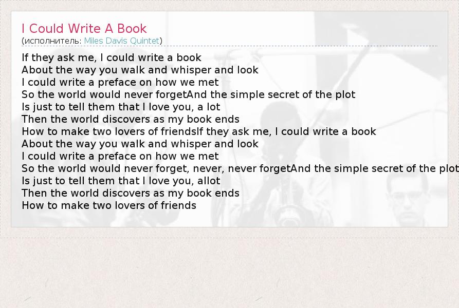 А как ты думаешь, о чем песня "I Could Write A Book" ?