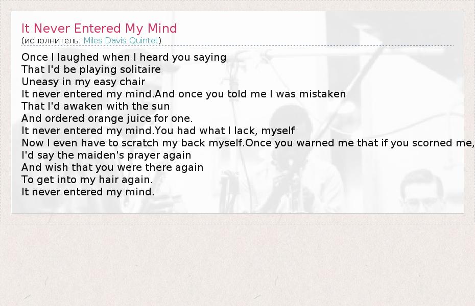 А как ты думаешь, о чем песня "It Never Entered My Mind" ?