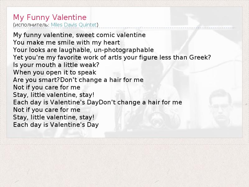 А как ты думаешь, о чем песня "My Funny Valentine" ?