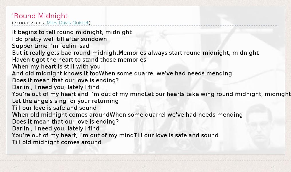 А как ты думаешь, о чем песня "'Round Midnight" ?