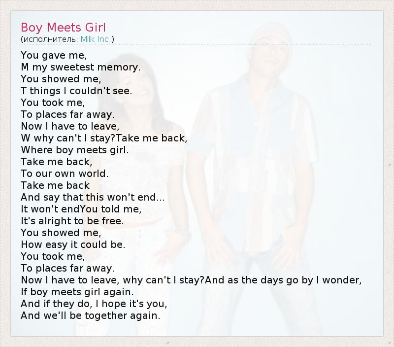 А как ты думаешь, о чем песня "Boy Meets Girl" ?