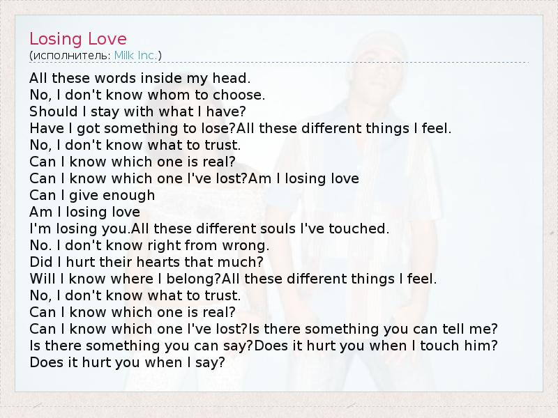 А как ты думаешь, о чем песня "Losing Love" ?