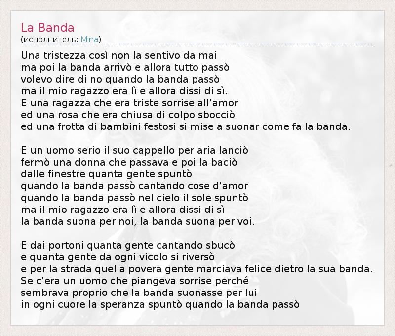 Это интересно:Анна Мария Мадзини (Anna Maria Mazzini) известная под псевдонимом Мина (Mina), родилась в Бусто Арсицио 25 марта 1940 года. Ее семья состояла из отца, Джакомо, который работал промышленным химиком, мамы Реджины и младшего брата Альфредо. В 1943 году они переехали в Кремону, где затем Анна Мария приступила к изучению бухгалтерского дела, которое, впрочем, оставила на четвертом курсе, потому что тем временем... продолжение