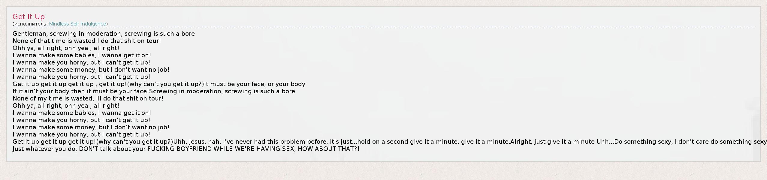 Get it up get it up get it up!(why can't you get it up?)Uhh, Jesus, hah, I've never had this problem before, it's just...hold on a second give it a minute, give it a minute.Alright, just give it a minute Uhh...Do something sexy, I don't care do something sexy