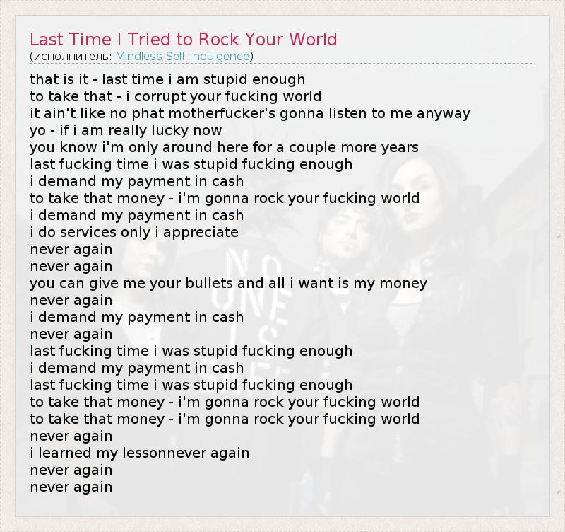 ГлавнаяИсполнителиMindless Self IndulgenceLast Time I Tried to Rock Your World