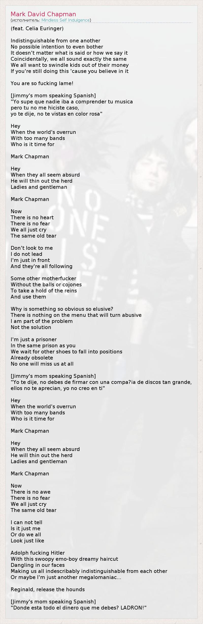 А как ты думаешь, о чем песня "Mark David Chapman" ?
