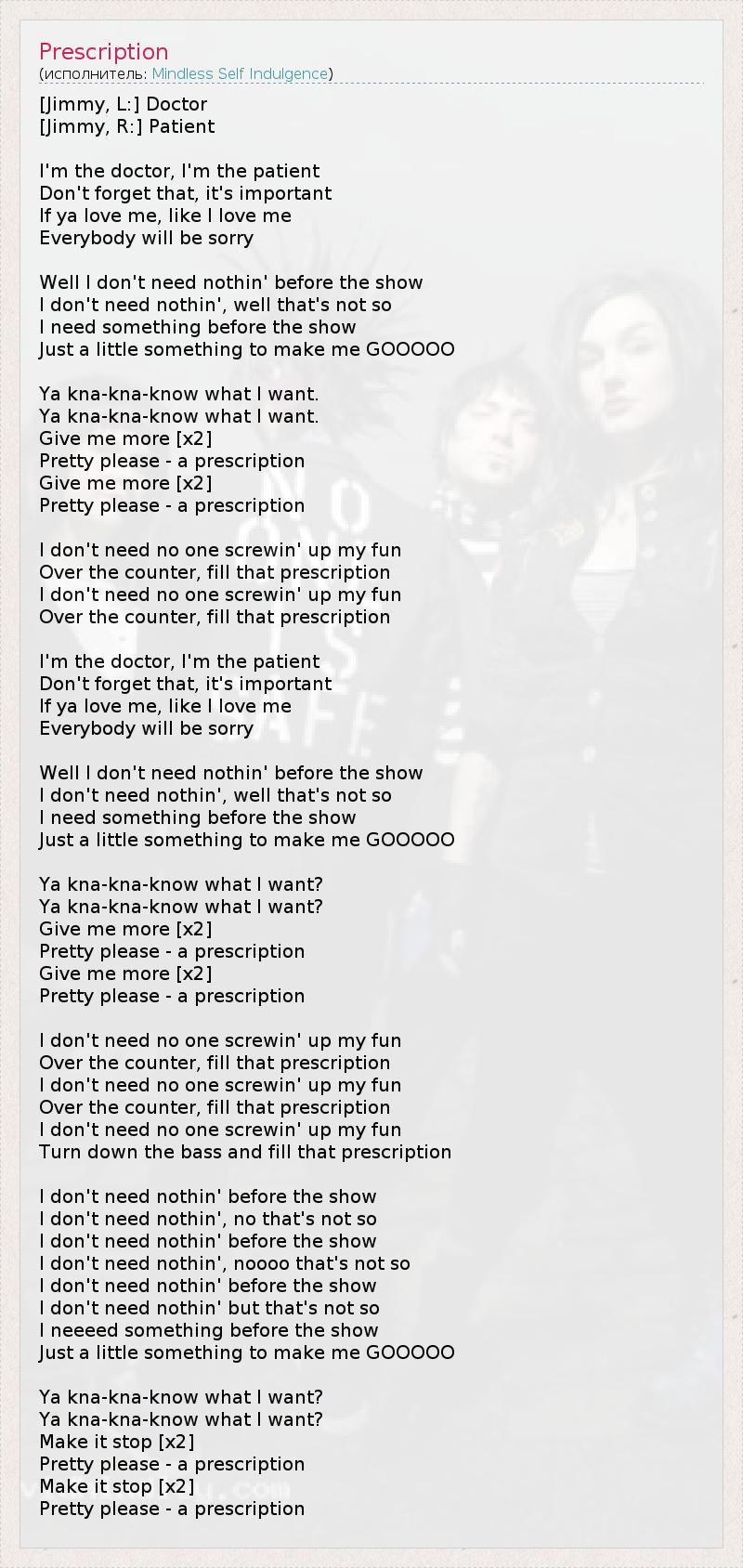 Это интересно:Mindless Self Indulgence (сокращенно — MSI) — американская группа альтернативного рока, образовавшаяся в Нью-Йорке в 1997 году и использующая в своей музыке элементы панка, металла, индастриал и электроники. Три первых альбома обеспечили квартету культовую известность; в числе тех, кто высоко отзывался о нём, были участники System of a Down, Korn, Staind, Sum 41, My Chemical Romance, Rammstein, Mushroomhead.Mindless Self Indulgence образовались... продолжение