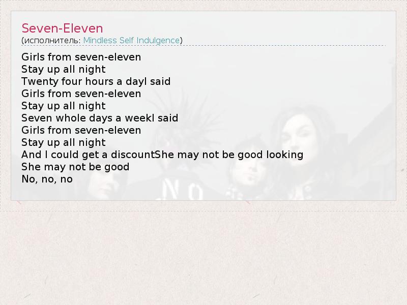 А как ты думаешь, о чем песня "Seven-Eleven" ?