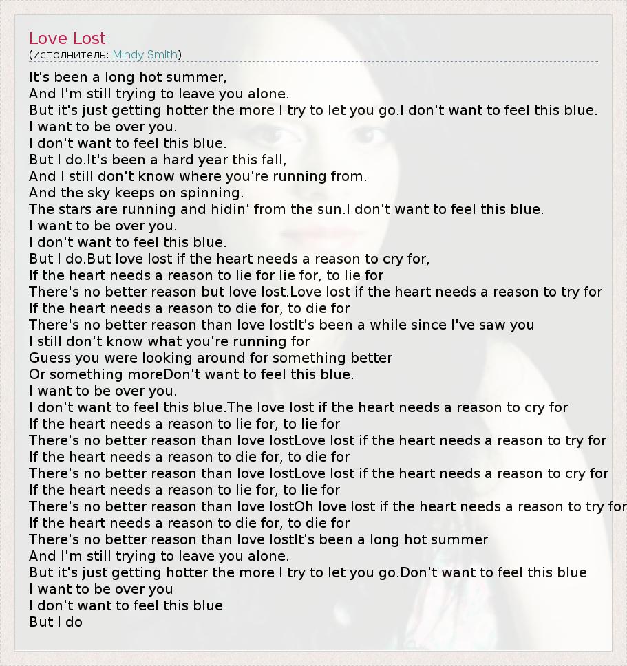 There's no better reason than love lostOh love lost if the heart needs a reason to try for