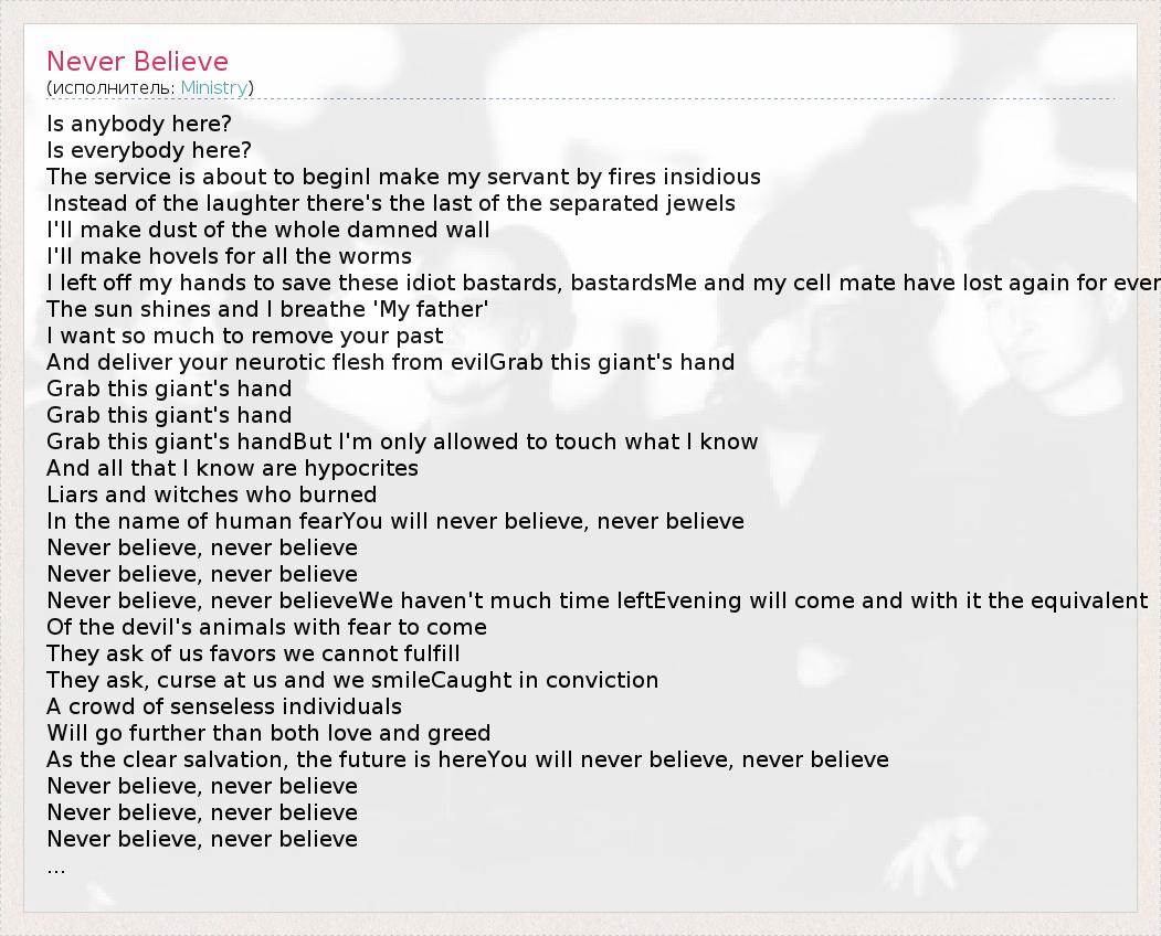 Never believe, never believeWe haven't much time leftEvening will come and with it the equivalent