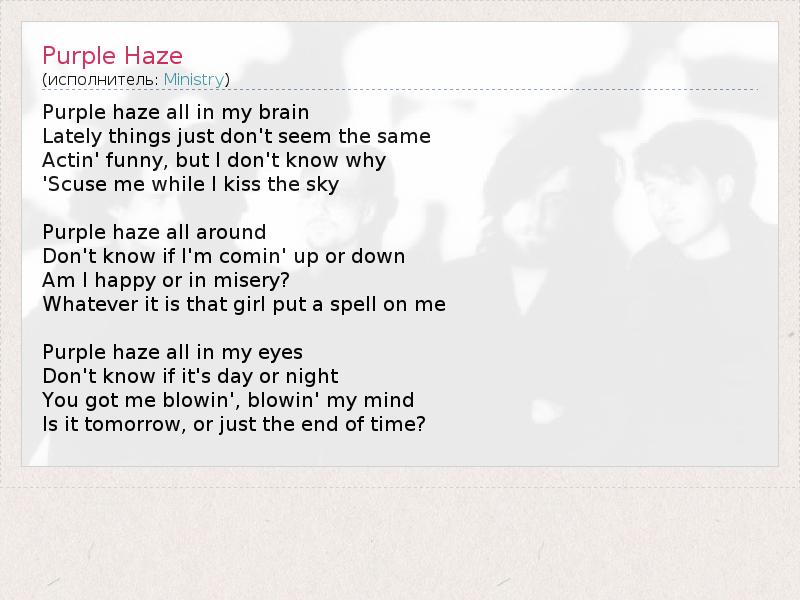 А как ты думаешь, о чем песня "Purple Haze" ?