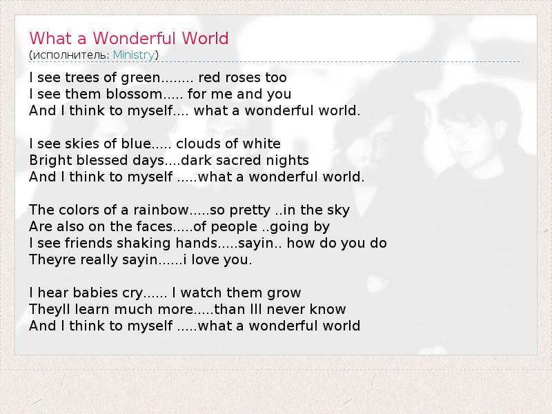 А как ты думаешь, о чем песня "What a Wonderful World" ?