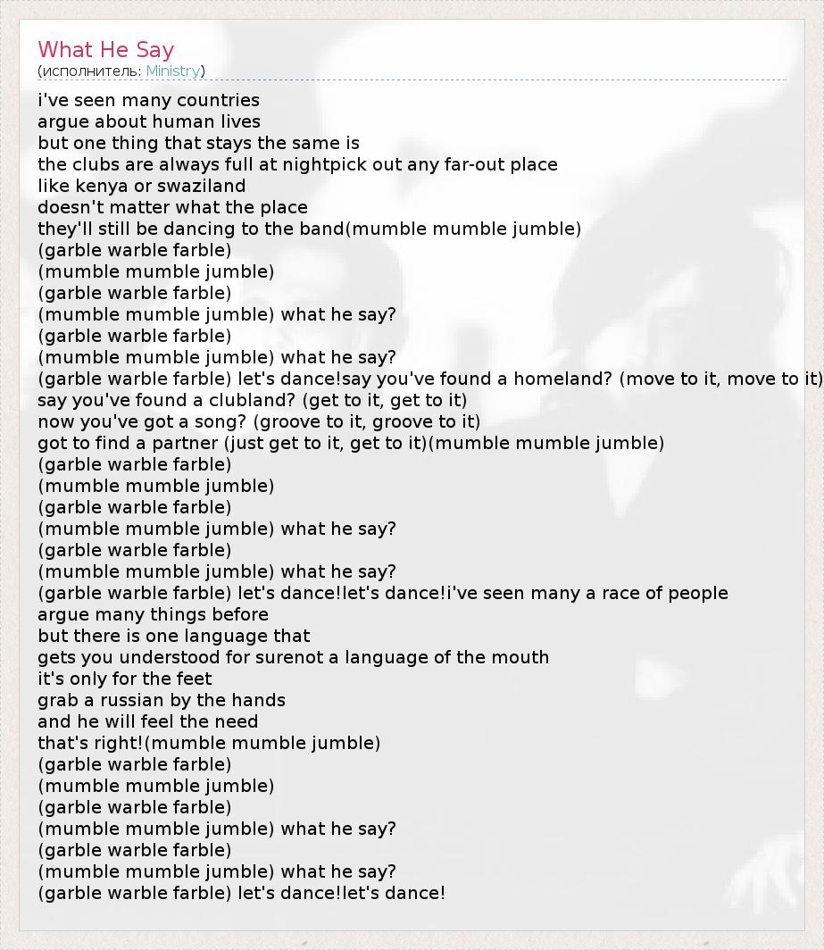 (garble warble farble) let's dance!let's dance!i've seen many a race of people
