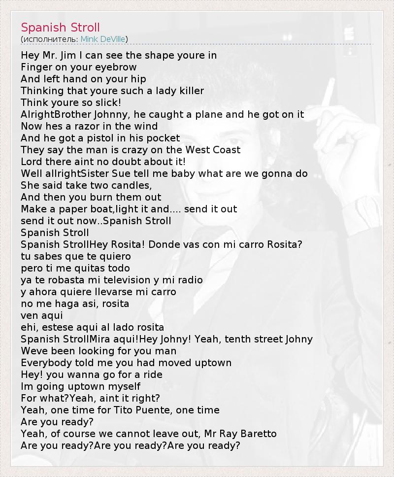 А как ты думаешь, о чем песня "Spanish Stroll" ?