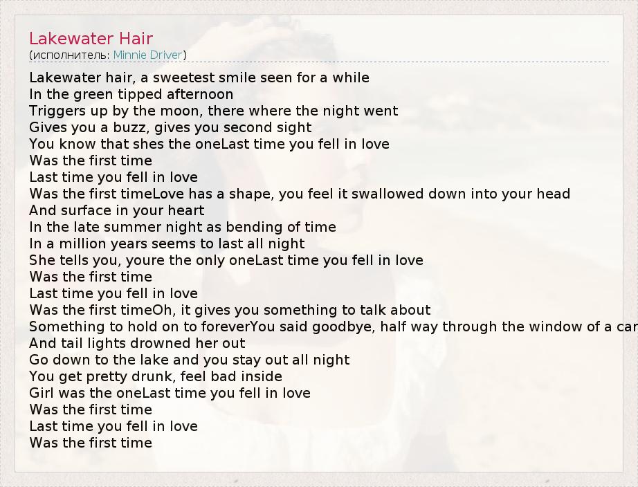 А как ты думаешь, о чем песня "Lakewater Hair" ?