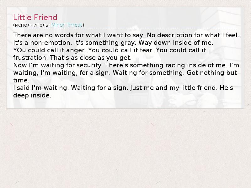 Это интересно:Minor Threat наряду с Bad Brains — единственное громкое имя в хардкоре, извлеченное из города Вашингтон (округ Колумбия), США. В 1980 году Minor Threat появились под художественным руководством Ian MacKaye, чтобы начать играть самый скоростной и безбашенный хардкор, который когда-либо звучал на этой планете. Контингент был ему подстать — басист Brian Baker (ныне присутствующий в составе Bad... продолжение