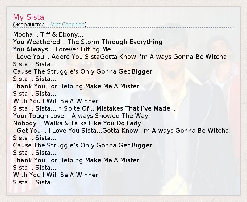 А как ты думаешь, о чем песня "My Sista" ?