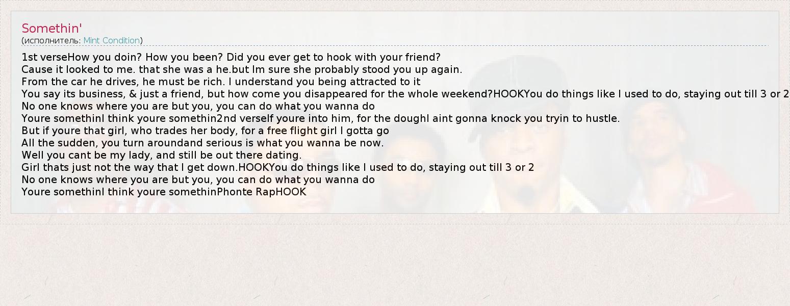 А как ты думаешь, о чем песня "Somethin'" ?