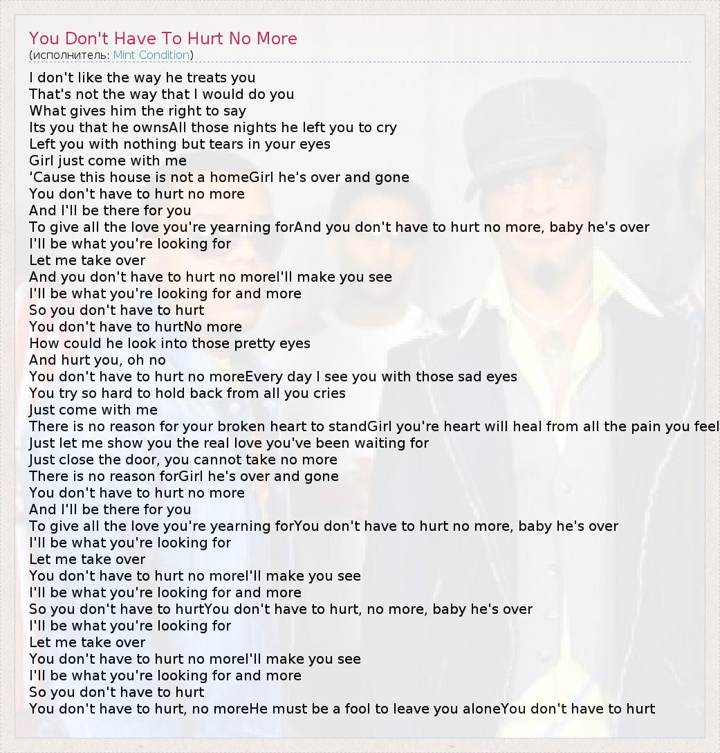 А как ты думаешь, о чем песня "You Don't Have To Hurt No More" ?