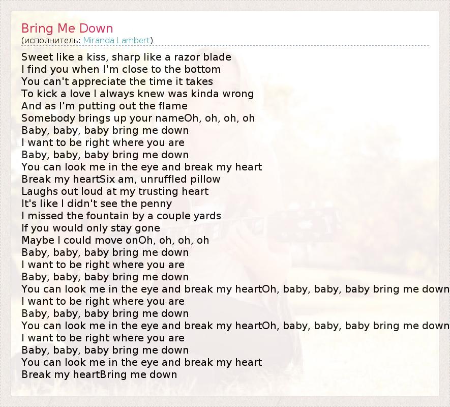 А как ты думаешь, о чем песня "Bring Me Down" ?