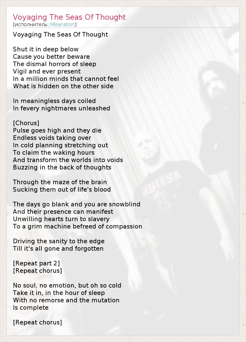А как ты думаешь, о чем песня "Voyaging The Seas Of Thought" ?