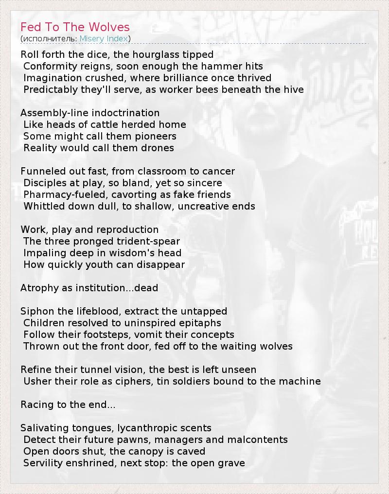 А как ты думаешь, о чем песня "Fed To The Wolves" ?