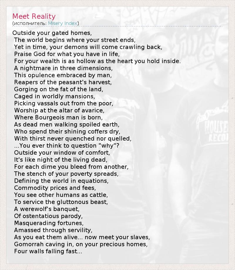 А как ты думаешь, о чем песня "Meet Reality" ?