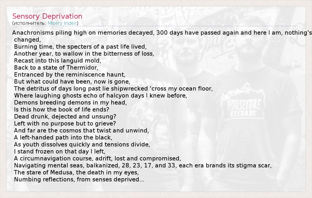 А как ты думаешь, о чем песня "Sensory Deprivation" ?