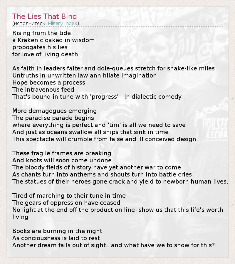 А как ты думаешь, о чем песня "The Lies That Bind" ?