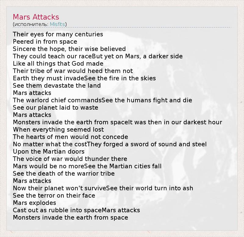 А как ты думаешь, о чем песня "Mars Attacks" ?
