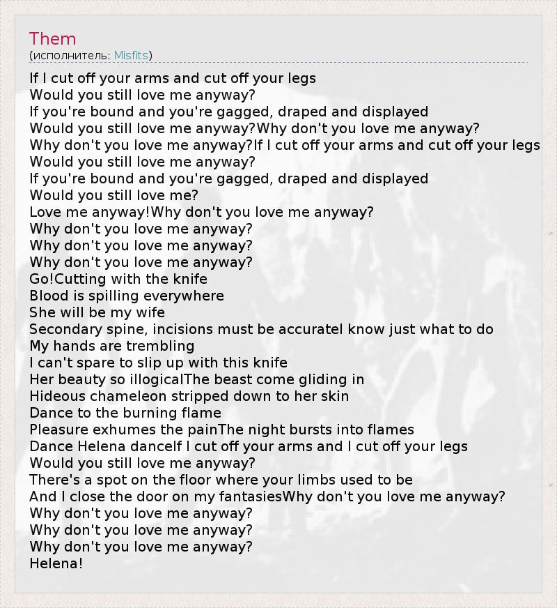 Why don't you love me anyway?If I cut off your arms and cut off your legs
