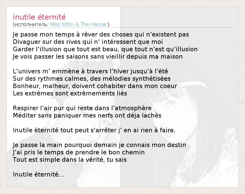А как ты думаешь, о чем песня "inutile éternité" ?