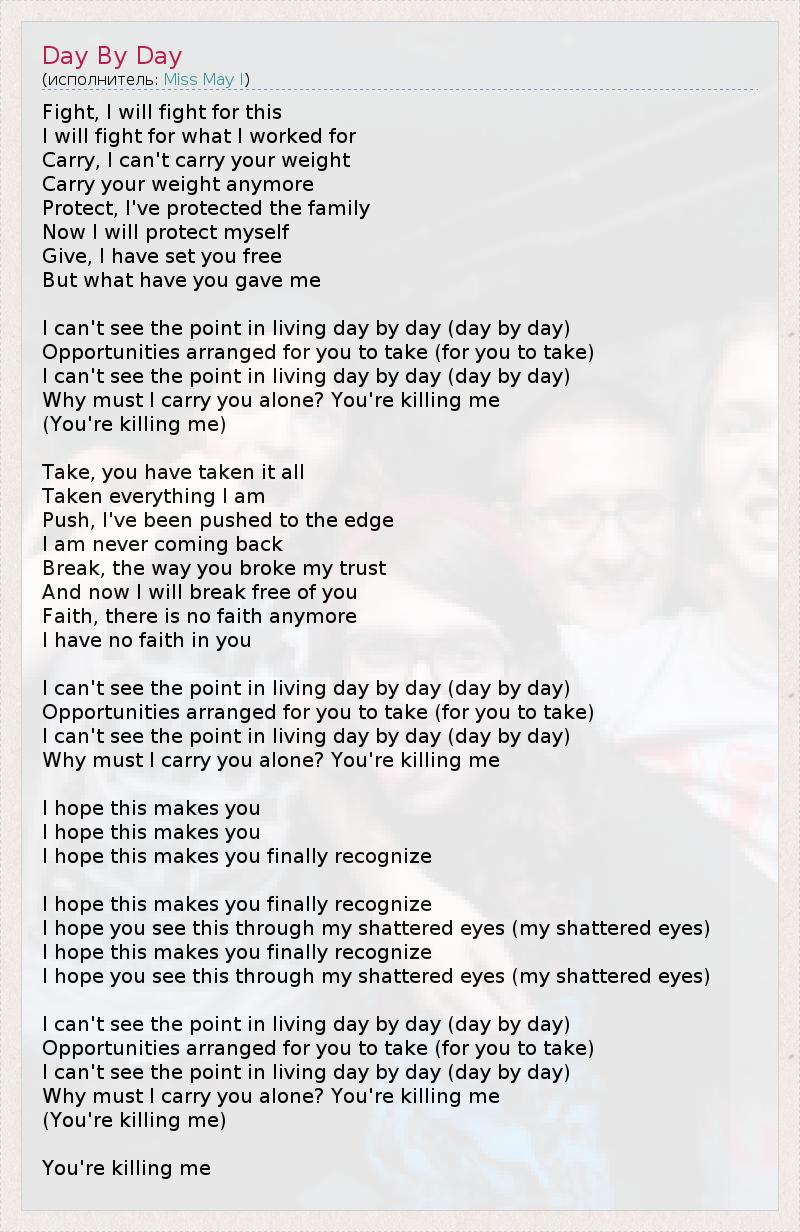 Я больше не вижу смысла жить изо дня в день (изо дня в день)