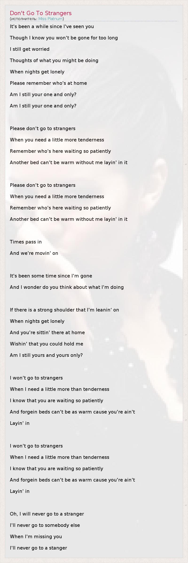 А как ты думаешь, о чем песня "Don't Go To Strangers" ?