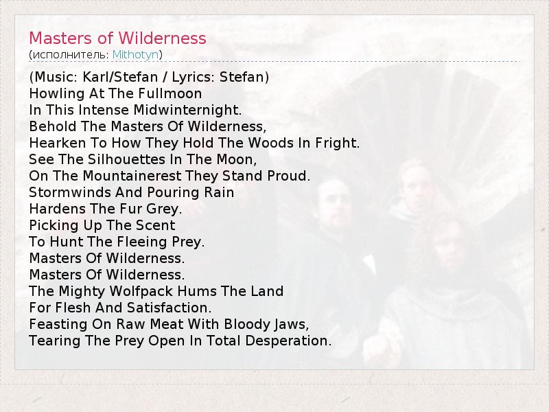 А как ты думаешь, о чем песня "Masters of Wilderness" ?