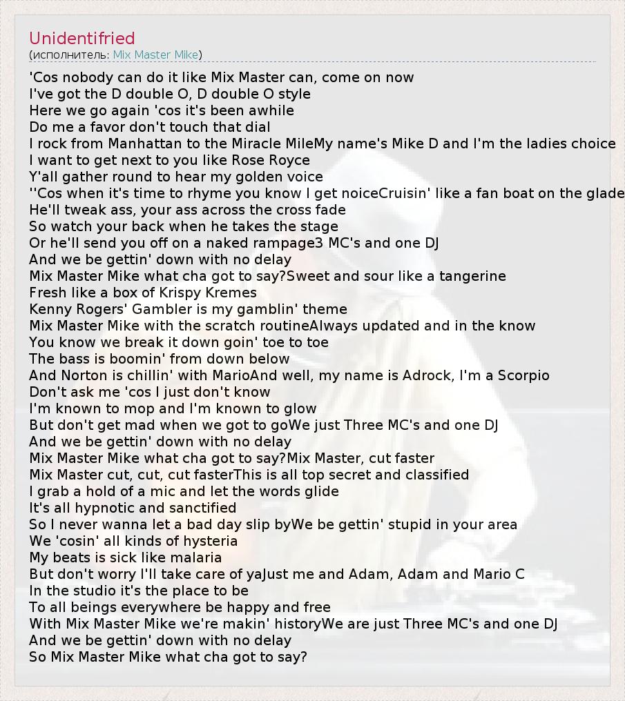 'Cos nobody can do it like Mix Master can, come on now