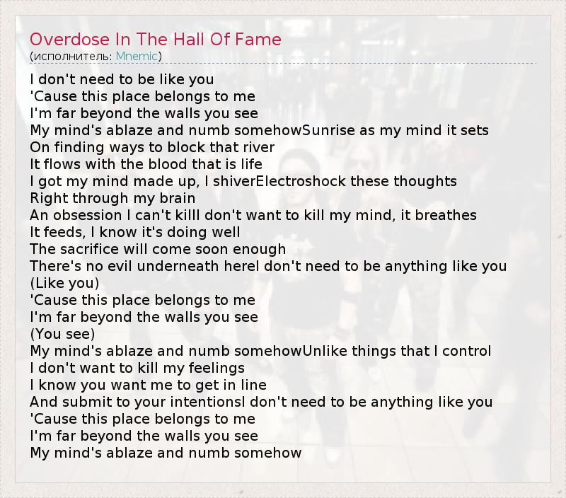 А как ты думаешь, о чем песня "Overdose In The Hall Of Fame" ?